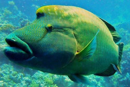 Другое название этого морского обитателя — губан (если губы вполголовы — трудно еще как-то назвать). Латинское название — Cheilinus undulatus, английское — Napoleonfish. Губанов насчитывается несколько сотен видов, водятся они в Красном море, Тихом и Индийском океанах.