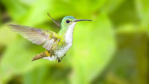 Как же птица добывает нектар? Подлетев к цветку, она замирает в воздухе и вводит клюв в цветок, после чего высовывает конец языка, который до этого был сложенный трубочкой. Нектар накачивается в полость рта с помощью глотательных движений и после пищевода поступает в двенадцатиперстную кишку, минуя желудок. А вот пауки и мелкие насекомые, которых ест колибри, попадают в желудок. Колибри лакает нектар со скоростью 12 раз в секунду! Ей нужно питаться каждые 10 минут. У наименьшей птицы самая высокая скорость обмена веществ среди всех позвоночных животных на планете.