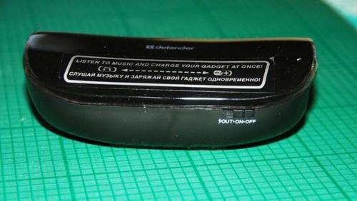 Defender Moon Power выполнен в форме полумесяца (видимо, отсюда и название модели). Можно выбрать устройство в черном или белом корпусе — на свой вкус. Если рассмотреть гаджет внимательнее, то обнаружим на его гранях несколько разъемов и средств управления. С помощью колесика можно регулировать громкость, переключать музыкальные треки или принимать входящий вызов. Один из разъемов на корпусе мобильной колонки предназначен для подключения к ней смартфонов или планшетов с целью их подзарядки (та самая функция Powerbank, о которой упоминалось выше).