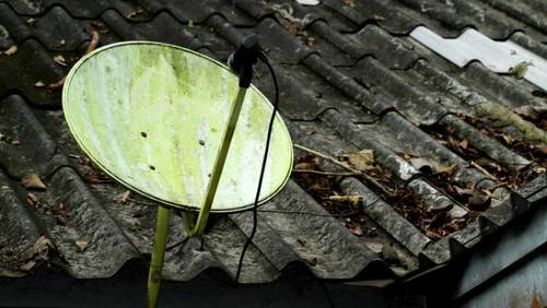 Скажем, вам повезло, ваши окна не только выходят на юг, но и ничто не мешает попаданию сигнала со спутника на тарелку. В этом случае установка антенны производится за окном, чуть ниже оконного отлива, но если вид из окна перекрывает соседний дом или деревья, то установка тарелки производится только на крыше дома. В этом случае вам придется вычислить длину коаксиального кабеля RG-6, не забыв посчитать его расход по крыше.