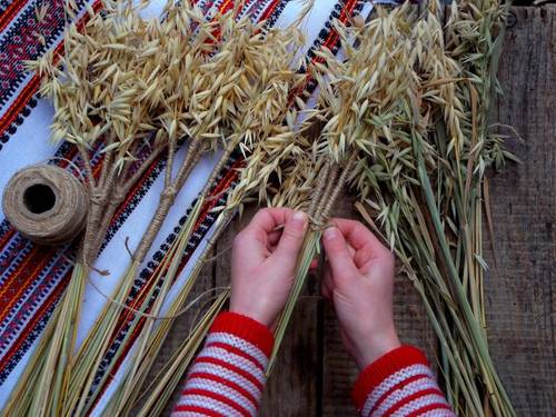 Важно было правильно подгадать время сбора сырья. Зерно должно быть спелым, однако не перезревшим. В противном случае оно могло высыпаться на землю. А ведь пустые колосья в обереге могли принести хозяину избы неурожайный год… Следовало также строго соблюдать количество колосков: в каждом снопике оно было кратным семи.
