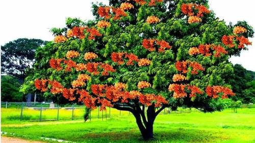 Есть в семействе Бобовых очень красивое вечнозелёное дерево — ашока. Его ствол одет в гладкую серовато-коричневую кору. Раскидистые ветви украшены растущими пучками блестящими листьями. Ещё краше у ашока яркие цветки, собранные в крупные пышные соцветия. Оранжево-жёлтые цветки, как большие фонари, освещают дерево во время цветения, при увядании они приобретают красный оттенок.