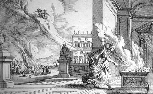 В самое пламя она головню роковую метнула.