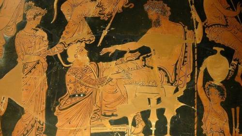 Интересные подробности: Агамемнон готов выгнать из дома Клитемнестру, которая стала его законной женой еще будучи совсем юной. Агамемнон успел оценить не только внешность и ум Хрисеиды, но и ее трудолюбие и умения — и всё это за короткий срок ее пленения.