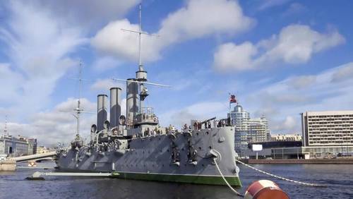 Но приказ о выходе в море судовой комитет отменил. В ночь на 25 октября крейсер покинул причал у Балтийского завода и стал на якорь едва ли не под окнами Зимнего дворца. А в 21 час 40 минут был произведен выстрел, названный впоследствии историческим. Выстрел этот, к счастью для Зимнего дворца, был холостым, поскольку боевых зарядов на борту крейсера, находящегося на ремонте, быть не могло. Но главное свое действие выстрел оказал: распугал немногочисленных защитников Зимнего дворца (если таковые были). Поэтому запланированный большевиками штурм не состоялся. Впрочем, в 1927 году его сняли на пленку в игровом кинофильме «Октябрь». Эти кадры впоследствии демонстрировали как документальные.