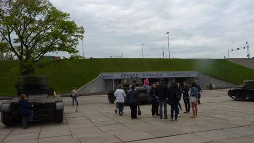 По силе эмоционального воздействия эта экскурсия произвела на меня неизгладимое впечатление. Она началась с посещения Музея-диорамы «Прорыв блокады Ленинграда», который расположен в пандусе Новоладожского моста через Неву, на Мурманском шоссе, вблизи деревни Марьино. Музей был открыт 7 мая 1985 года. На площади перед музеем стоят танки, участвовавшие в прорыве блокады Ленинграда: тяжелые КВ-1, КВ-1с, легендарный Т-34 и легкие Т-38, Т-26. Диорама является частью музея-заповедника «Прорыв блокады Ленинграда», в который так же входят музей «Дорога жизни», мемориалы «Невский пятачок» и «Синявинские высоты». Авторы диорамы — ленинградские художники — ветераны войны и участники ленинградской эпопеи
