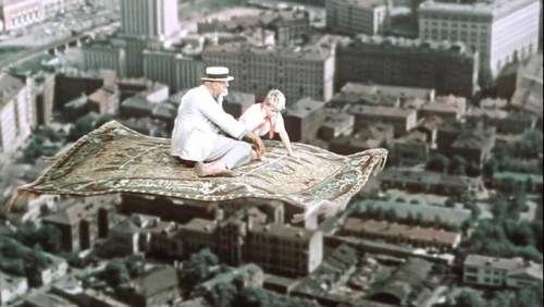 Компьютерной графики в те времена не было, поэтому в фильме много комбинированных съёмок. Подвешенный в павильоне ковёр-самолёт впоследствии был наложен на фон пролетающего пейзажа, а облака создавались с помощью дыма. Именно дымом были вызваны слёзы исполнителя роли Жени, когда он сбрасывал вниз подаренные индусами бананы. Но это было так к месту, что сцену режиссёр оставил.