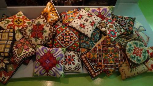 Наибольшая площадь экспозиции второго этажа посвящена норвежскому текстилю и ремёслам — «Розы и легенды в народном искусстве». Количество и разнообразие одежды, старинных обучающих прописей-вышивок на канве, традиционные орнаменты и крой, шитьё и вязание — в витринах нескольких залов. Отдельной витриной целое собрание достопочтенных жителей Страны фьордов — фигур в традиционной одежде. Изучать кушаки, платочки и носки с муфтами, ткачество и пошив можно долго — такое ощущение, что всяк старинный норвежец, перед тем как сложить надоевшую рубашку в сундук, интересовался у стражей этнографии в Бергене — не надо ли для коллекции?