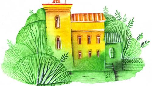 «Точильщик». Будка этого сапожника очень похожа на предыдущую. Время действия — начало сентября, на дереве за домом висят яблоки.