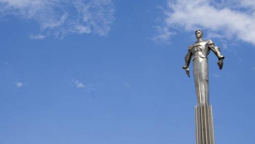 На удивление, все было совершенно спокойно, по Горького шли в сторону центра люди, не так много, как до Пушкинской площади, но все же шли, при этом, также как и мы, из переулков и проходных дворов появлялись все новые и новые лица. В общем, к Центральному телеграфу подошла уже достаточно мощная толпа. В этот момент над улицей появился то ли небольшой одномоторный самолет, то ли вертолет, сейчас вспомнить точно не могу, помню только, что из него разбрасывали портреты Гагарина. На небольшом кусочке красной бумаги в черном цвете был напечатан первый космонавт Земли, видно, очень спешно печатали, потеки краски свидетельствовали об этом. Какой-то булавкой, выделенной кем-то из девчат, я прикрепил этот портретик к лацкану своего пальто.