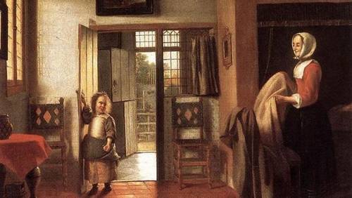 * Дельфтский изразец в те времена был своеобразным «миром чувственных вещей в картинках» (выражение Яна Амоса Коменского, в 1658 году издавшем первый в истории иллюстрированный учебник с таким же названием), энциклопедией, относительно дешевой и доступной. Изразцы расписывались вручную, рисунки были самые разнообразные: изображение профессий, детских игр, морских судов, библейских и евангельских сюжетов… Размер плиток был приблизительно 120×120 мм. На такой площади их умещалось штук 200−300, и все — с разными рисунками. Естественное любопытство детей заставляло родителей отвечать на вопросы. Это и было начальное семейное образование.