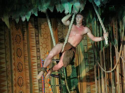 Плотная работа над спектаклем длилась два с половиной года. Она проходила при отсутствии сцены (на ремонте 23 года) и при наличии высокого человеческого энтузиазма. Количество занятых артистов, музыкантов, творческого и технического персонала поражает. Нельзя не заметить, что уровень вокала, хореографии и сценического движения выходят за рамки мюзикла. Они достигают уровня качественной оперетты с реальным участием заслуженных артистов России и лауреатов международных конкурсов. Константин Скрипалев, исполнитель Тарзана, — дипломант всероссийского конкурса. Исполнители не скрывали, что спектакль создавался под Константина. Он оправдал доверие. Харизматичный, воздушный, яростный, он летал по сцене и заставлял сопереживать своим терзаниям.