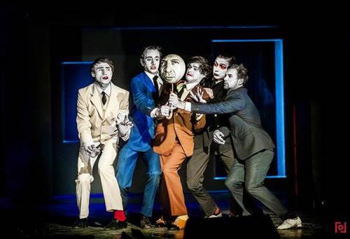 Главным героем спектакля «Хармс. Мыр» является человек Хармс. Он легко узнается если не в первом, то в каком-нибудь запасном человеке — их, на всякий случай, на сцене представлено с запасом: каждый неопределенного возраста в нестрогом костюме черно-серо-буро-малинового цвета, в цветных гольфах, без цепочки с черепами, головном уборе типа «шляпа», с усами-бровями. И непременно умеющий летать. Автор детских и взрослых стихов и рассказов Даниил Хармс умел летать. По этому и другим признакам зритель может догадаться, что главный герой спектакля, скорее всего, сам Хармс и есть. А может и не догадаться. Зритель сегодня разный и догадливый себе на уме. Иногда Хармс выступает в одиночестве. Но чаще хором, сольно или а-каппельно, конкретно размышляя о чем-то неконкретном.