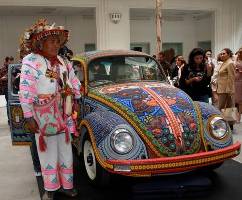 уичольских индейцев «психоделическим» или даже «шизофреничным». Поскольку такое безумство красок и витиеватость, многосложность узоров не укладывается в голове. Оно поражает, удивляет, восхищает или отталкивает. Такие вещи попросту не могут не вызывать сильных эмоций.Одна из работ этих мастеров (точнее двух уичольских семей) даже была приобретена Королевским музеем изящных искусств Брюсселя. Это старый автомобиль Volkswagen Beetle, декорированный вручную снаружи и внутри двумя миллионами (!) бисеринок (более 90 кг). Чтобы привлечь внимание к Мексиканской культуре в целом и к мастерству уичольских индейцев в частности, эта машина колесила по миру, останавливаясь в известнейших музеях.