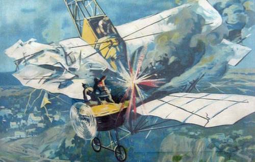 А потом на аэропланы начали ставить пулеметы… Вначале англичане и французы ставили пулеметы на свои самолеты. В самом начале — на те из них, у которых был толкающий винт, установленный сзади. Но такие самолеты имели маленькую скорость. Затем стали ставить пулеметы на самолеты с двигателем, расположенным впереди.