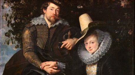 «Правая рука Изабеллы лежит на правой руке мужа, ее лицо обращено к зрителю, ее поза естественна. Ее проницательный взгляд светится счастьем, а в слегка шаловливом выражении глаз можно прочитать гордость за победу над сердцем великого художника, который выбрал ее как спутницу жизни. Лицо Рубенса безмятежно, он уверен в будущем и полон радостного ощущения, что он любим».