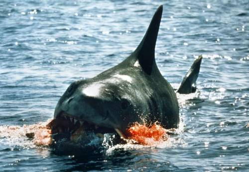 И правда, если акула маленькая, то нужно лишь уменьшить в размерах и ее жертву. И вуаля — масштаб трагедии сохраняется! Беда в том, что жокей-каскадер вообще не имел опыта подобных съемок: раньше он дублировал детей (в сценах с лошадьми) на телевидении! Беднягу с трудом уговорили залезть в тесную клетку, затем в холодную воду и ждать, когда вокруг соберутся кровожадные акулы.