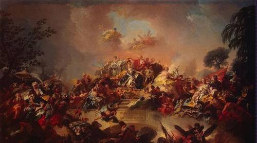 Интересно, что для борьбы с этим злом она прибегла к уже проверенному методу сатирического маскарада. Знаменитое аллегорическое действие, названное «Извращенный мир», высмеивало пристрастие к роскоши щеголей и щеголих. Колесницы, запряжённые ослами, волами, свиньями в сопровождении обезьян, везли судей, переодетых лисицами, купцов в щегольском виде.