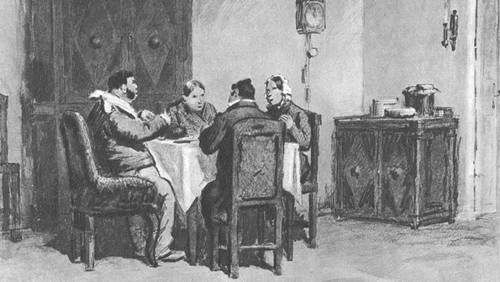 Обед у Манилова хоть и описан достаточно подробно, но остается у читателя лишь легким ароматом, неуловимым эфиром, ощущением чего-то неуловимого и… бессмысленного. Много разговоров, упражнений в проявлении деликатности, но из блюд Гоголь упоминает лишь щи. Грезящий об утонченности, мечтательный пустой Манилов — разве можно составить лучший портрет?