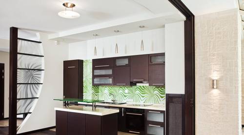 Также тем, кто хочет иметь у себя кухню до потолка, следует понимать, что потолок в этом случае будет подчеркнут кухонным гарнитуром, а потому к его «ровности» и «идеальности» не должно быть ни одной претензии. Если же вы планируете делать подвесной потолок из гипсокартона либо натяжной потолок, это нужно учитывать сразу на этапе дизайн-проекта будущей кухни.