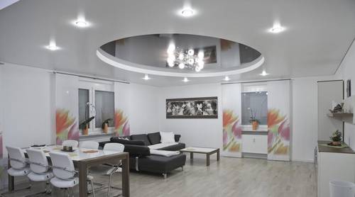 - Матовые — не привлекают к себе много внимания, по виду (на первый взгляд) мало чем отличаются от традиционных оштукатуренных и покрашенных потолков.
