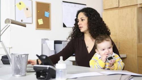Как видите, маленький ребенок — совсем не повод забыть о работе.