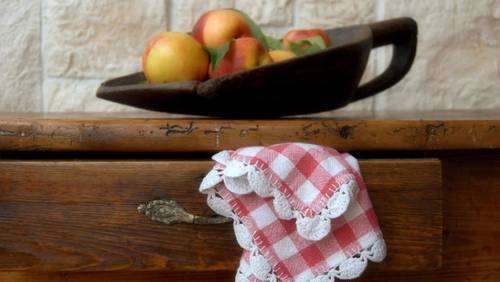 Вообще, текстиль на кухне в стиле «кантри» можно оформить выигрышно недорого. Иногда достаточно порыться в сундуке с бабушкиным приданым. Скатерти и салфетки грубого некрашеного полотна, льняные полотенца — все это по-настоящему деревенское и оригинальное. Цветовая гамма теплых тонов предпочтительнее, чем холодные оттенки, ведь это домашняя, неформальная обстановка.