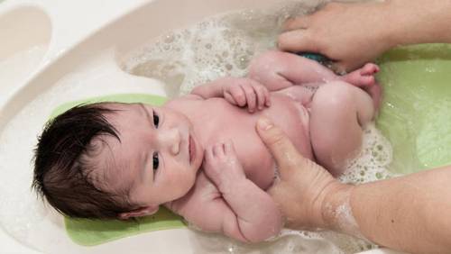 Можно использовать детское мыло, детский шампунь или пенку для купания. Лучше всего приобретать продукцию известных проверенных марок без отдушек. Обязательно учитывайте маркировку с указанием возраста ребенка: для трехмесячного ребенка лучше использовать шампунь для новорожденных, чем шампунь для полугодовалых малышей. Не стоит использовать их слишком часто, они сушат кожу.