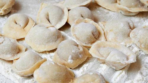 Очень хорошо помню ежезимнюю «лепку» пельменей: вижу всех на кухне за большим столом, одна бабушка раскатывает тонкие листы теста и вырезает аккуратные, одинакового размера кружочки при помощи стеклянной рюмки, которая хранилась высоко в буфете, все остальные лепят пельмени и складывают на свой противень — потом же надо сравнивать, кто налепил больше, у кого самые маленькие или самые красивые. Абсолютным чемпионом по всем показателем всегда был дед. Обязательно лепили счастливый пельмень и гадали, кому же он достанется? Слышу оживленные голоса, смех. Я кручусь под ногами и «помогаю» считать пельмени: семь, семь, семь… пока из множества маленьких и аккуратненьких не получился один огромный.