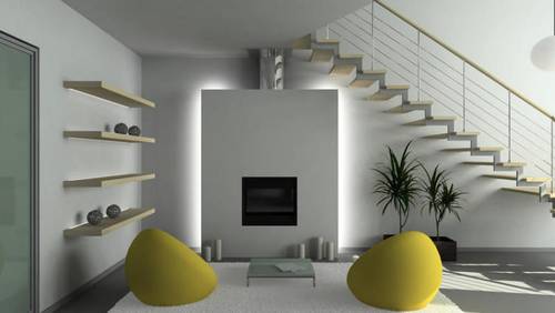 Помещение должно казаться свободным, целостным, легким и органичным. Должно быть много встроенных светильников. Линии и углы — четко прямые. Пространство делится на отдельные зоны, для этого были применены функциональные перегородки.