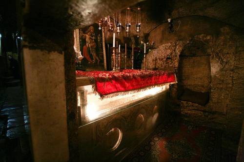 Иногда Богородица приходила к месту нахождения Гроба Господня, воскуряла там ладан и возносила молитвенное коленопреклонение. Враги Иисуса Христа, чтобы воспрепятствовать ей, выставили там стражу, однако она проходила туда незримо.