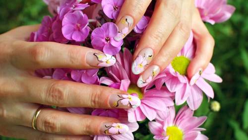 Многие сейчас, возможно, представили себе иероглифы на ногтях, на самом же деле это очень красивые объемные розы, пионы, орхидеи, лилии, хризантемы, нарциссы и другие цветы, выполненные в нежных пастельных оттенках.