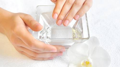 Обрезной маникюр подразумевает процедуру распаривания ногтей. Для распаривания мы можем использовать морскую соль, оливковое масло, эфирные масла лимона и апельсина. Цитрусовые способствуют укреплению ногтя, а лимончик еще обладает отбеливающими свойствами, что немаловажно для наших рук.
