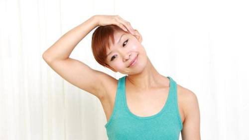 5. Сидя, положив одну ладонь на голову в области виска. Наклоняя голову в сторону, одновременно надавливать на нее ладонью, противодействуя движению головы в течение примерно 10 с. Отдохнуть. Повторить 10 раз.