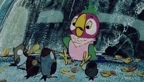 В третьей серии попугай попадает в деревню, где знакомится с новым героем — добрым трактористом Василием. Его озвучил Герман Качин, а Вовку и ворону — Маргарита Корабельникова. Кот на этот раз заговорил голосом самого Валентина Караваева.