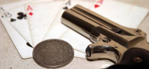 Надо сказать, что пистолеты Деринджера были не единственным короткоствольным многозарядным оружием на Диком Западе. Уже «пошли в народ» знаменитые револьверы полковника Кольта, первые револьверы «Смит энд Вессон». Многочисленные «перечницы» — пистолеты типа револьверов, у которых передвигался по кругу не барабан с патронами, а стволы, расположенные по кругу, тоже были весьма популярны в то непростое время, когда лишиться оружия означало, скорее всего, лишиться жизни. И всё же, у револьверов была очень высокая цена, «перечницы», наоборот, были необычайно дёшевы, но объёмны (в рукав не спрячешь), да и точность их оставляла желать лучшего.