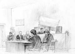 В России все наоборот, мы чаще видим фотосъемку, видеосъемку того, что происходит в зале суда, а вот зарисовок процесса, выражений лиц участников суда практически нет.