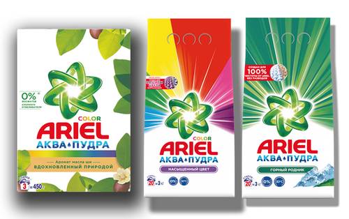 Первым на новый формат перешел порошок Tide весной этого года, осенью в продаже появился Ariel и до конца года — «Миф Аквапудра». Все порошки производятся локально на заводе со статусом «ноль производственных отходов на полигон» в г. Новомосковск, Тульская область.