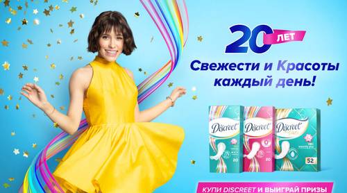 В честь своего юбилея Discreet дарит летнее настроение, свежесть и подарки! Участниц ждут еженедельные призы — подарочные сертификаты на шоппинг, и главный приз, который будет разыгран среди всех участниц конкурса, — 150 000 рублей. Победительница сможет по-новому взглянуть на себя и преобразиться до неузнаваемости или потратить приз на исполнение мечты!