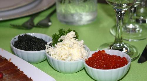 Отличным вариантом для праздничного застолья с большим количеством гостей является канапе с икрой. На тост или кусочек свежего багета выкладываем нежный крем-сыр, а сверху украшаем щедрой порцией икры лососевых. Дополняем закуску по вашему вкусу: свежая зелень, овощи, ломтик лимона для яркости и свежести. Фантазия не ограничена. Икорные канапе — это изысканная и аппетитная закуска, которая точно порадует глаз и гастрономические вкусы ваших гостей.