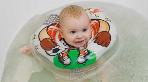 Существуют надувные круги, предназначенные специально для купания новорожденных детей. Для ребенка с ДЦП также отличный вариант, причем использовать его можно более длительный период.