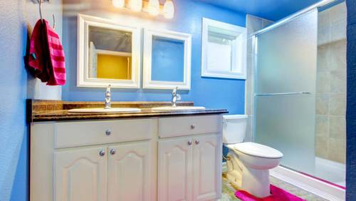 При отделке стен и пола в ванной комнате также следует учитывать фактор повышенной влажности. Наиболее стойким и долговечным покрытием для этого является кафельная плитка. В настоящее время можно найти плитку со специальной антигрибковой эмалью, которая исключает появление на ее поверхности плесени и грибка. Мастера-отделочники рекомендуют использовать для плиточных швов в ванной комнате специальную затирку для бассейнов, которая также устойчива к почернению. Не забудьте, что цвет плитки должен гармонировать с выбранной вами мебелью для ванной комнаты. Поэтому её следует подбирать уже на стадии проведения ремонтных работ.
