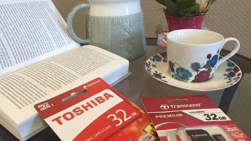 Для того, чтобы это выяснить, я купил в одном магазине две карты по 32 ГБ, соответствующие Class 10 / UHS Speed Class 1. Обошлись они мне примерно в одинаковые суммы: Toshiba Exceria (890 руб.) и Transcend (850 руб.)