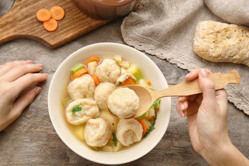 - Клёцки добавляем за несколько минут до окончания варки, потому к этому времени корнеплоды в супе должны быть полностью готовы.