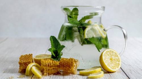 - Влейте к нему сок, выжатый из лимона. Добавьте мед (или сахарный песок). При необходимости долейте еще немного кипяченой воды.