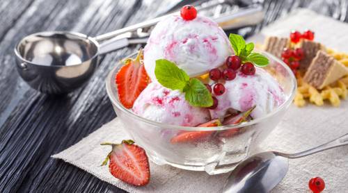 Можно порадовать домочадцев и вкусным мороженым со сгущенкой и клубникой. Для приготовления этого холодного десерта вам потребуется запастись такими ингредиентами: