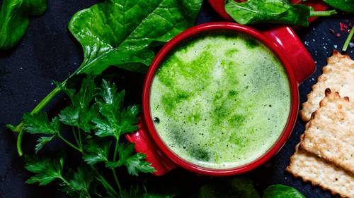 Чтобы побаловать своих домочадцев шпинатным крем-супом с гренками, понадобится взять набор продуктов, состоящий из: