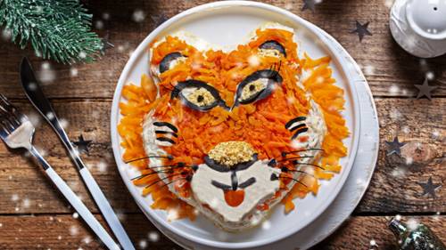 Оригинальное оформление салата «Тигр» позволит этому блюду занять почетное место в самом центре новогоднего стола. При желании рецептуру можно дополнить разными продуктами, исходя из своего вкуса.