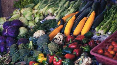 А пока идет этот процесс, почистили и порезали кубиками небольшой кабачок. Помыли и так же, кубиками, порезали пару помидоров. Мелко нарубили хороший пучок зелени (лук-перо, укроп, петрушка, кинза или что-то т. п.).