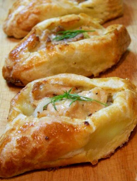 В эти расстегаи идет дрожжевое тесто, лучше венское, хотя вы можете использовать любое, которое у вас хорошо получается.